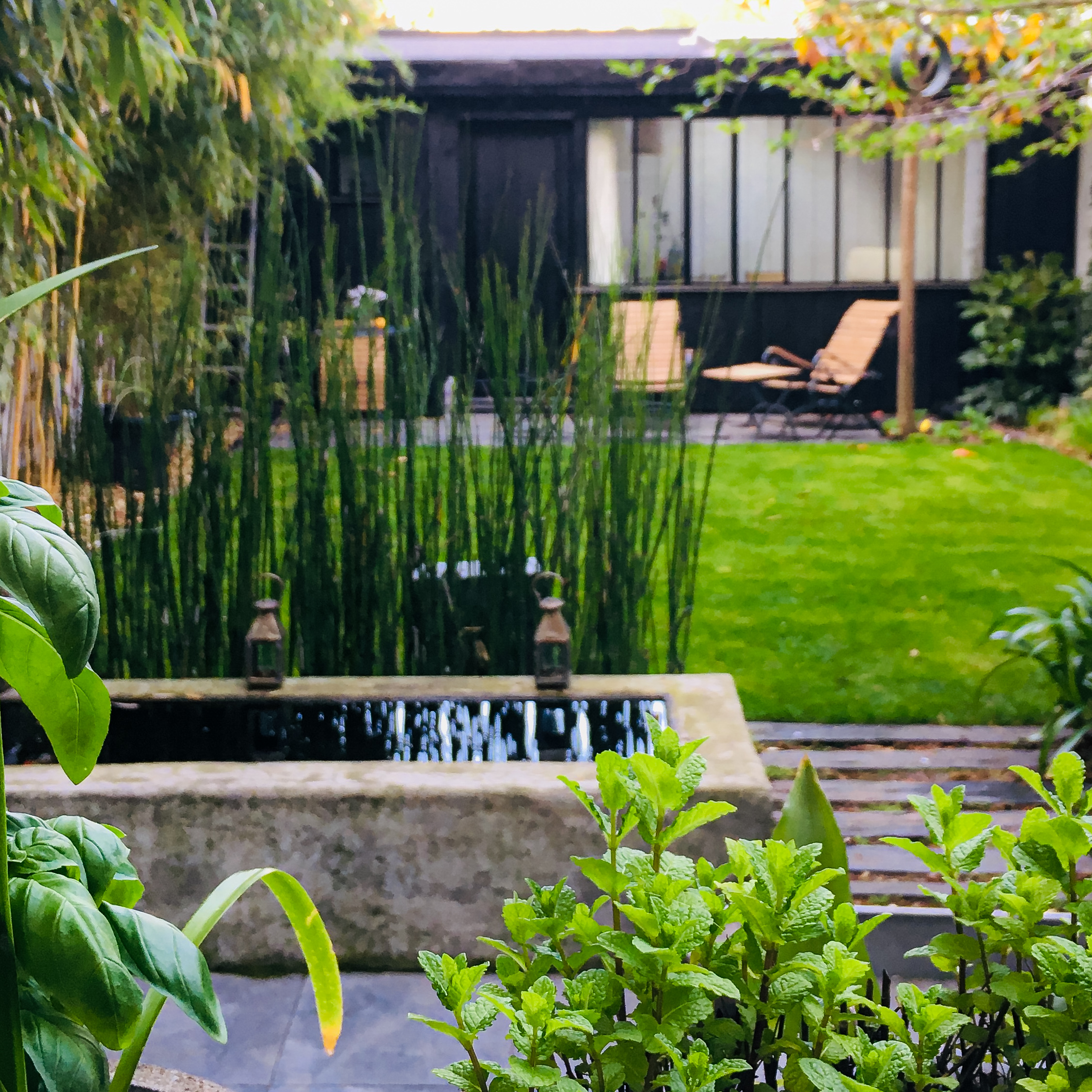 Villa René Maison de ville Le projet : Gérer de gros vis-à-vis, et concevoir un jardin familial, avec une terrasse de plein pied , un point d’eau, dans un cocon végétal. Et dont certains usages devront évoluer dans le temps. Asnières sur Seine 92 Conception Fabio Pane Chantier Fabio Pane